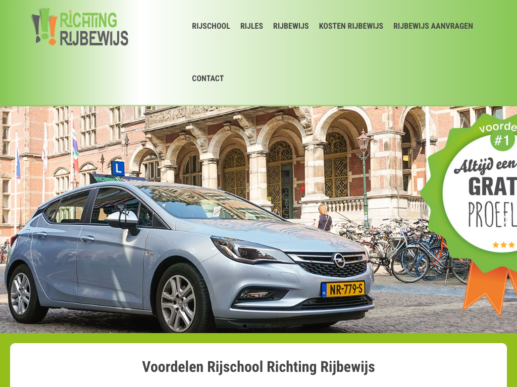 Rijlessen volg je bij een Rijschool. 46,8 % van de Nederlanders slaagt in één keer voor het praktijkexamen. Men kan in Nederland met 16,5 jaar bij elke rijschool beginnen met het nemen van rijlessen. Om een rijschool te beginnen moet men uiteraard zelf een rijbewijs hebben, en daarnaast moet men in het bezit zijn van een bevoegdheidspas van het IBKI. Een lesauto moet voorzien zijn van een blauw bord met een witte L en een dubbele bediening (koppeling en rem aan de instructeurszijde) zodat de instructeur daarmee een rijbewijsleerling kan begeleiden, coachen en indien nodig kan ingrijpen. Bij de opleiding voor het praktijkexamen kan de vordering getest worden middels een tussentijdse toets, een rijtest die verloopt als een echt examen. Het is een gelegenheid om alvast te wennen aan het rijexamen en eventuele nervositeit weg te nemen. Het theorie-examen kan afgelegd worden wanneer iemand 16 jaar of ouder is. Het examen bestaat uit 25 vragen over gevaarherkenning, waarvan er minstens 13 goed beantwoord moeten worden. De kandidaat ziet een foto van een bepaalde situatie en kiest of hij moet remmen, het gas moet loslaten of niets hoeft te doen. Ook krijgt de kandidaat 30 vragen over de verkeersregels en 10 vragen over verkeersinzicht, waarvan er 35 goed moeten worden beantwoord.