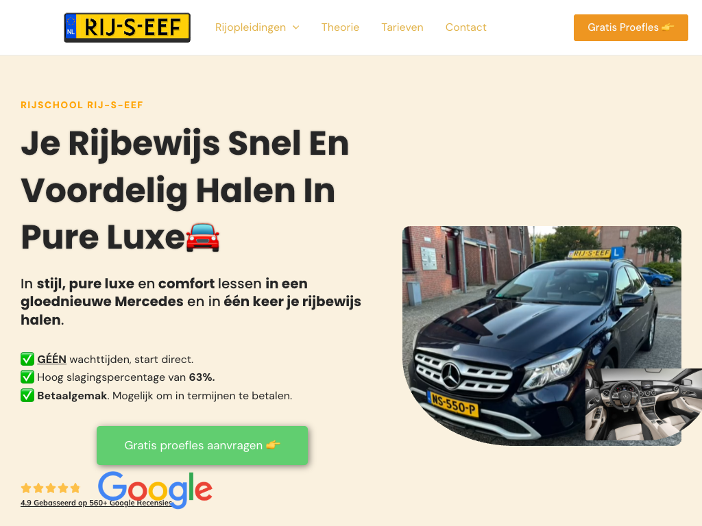 Rijlessen volg je bij een Rijschool. 46,8 % van de Nederlanders slaagt in één keer voor het praktijkexamen. Men kan in Nederland met 16,5 jaar bij elke rijschool beginnen met het nemen van rijlessen. Om een rijschool te beginnen moet men uiteraard zelf een rijbewijs hebben, en daarnaast moet men in het bezit zijn van een bevoegdheidspas van het IBKI. Een lesauto moet voorzien zijn van een blauw bord met een witte L en een dubbele bediening (koppeling en rem aan de instructeurszijde) zodat de instructeur daarmee een rijbewijsleerling kan begeleiden, coachen en indien nodig kan ingrijpen. Bij de opleiding voor het praktijkexamen kan de vordering getest worden middels een tussentijdse toets, een rijtest die verloopt als een echt examen. Het is een gelegenheid om alvast te wennen aan het rijexamen en eventuele nervositeit weg te nemen. Het theorie-examen kan afgelegd worden wanneer iemand 16 jaar of ouder is. Het examen bestaat uit 25 vragen over gevaarherkenning, waarvan er minstens 13 goed beantwoord moeten worden. De kandidaat ziet een foto van een bepaalde situatie en kiest of hij moet remmen, het gas moet loslaten of niets hoeft te doen. Ook krijgt de kandidaat 30 vragen over de verkeersregels en 10 vragen over verkeersinzicht, waarvan er 35 goed moeten worden beantwoord.