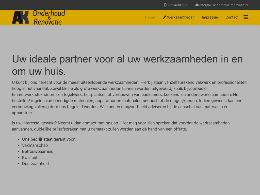 - Verbouw en onderhoud;