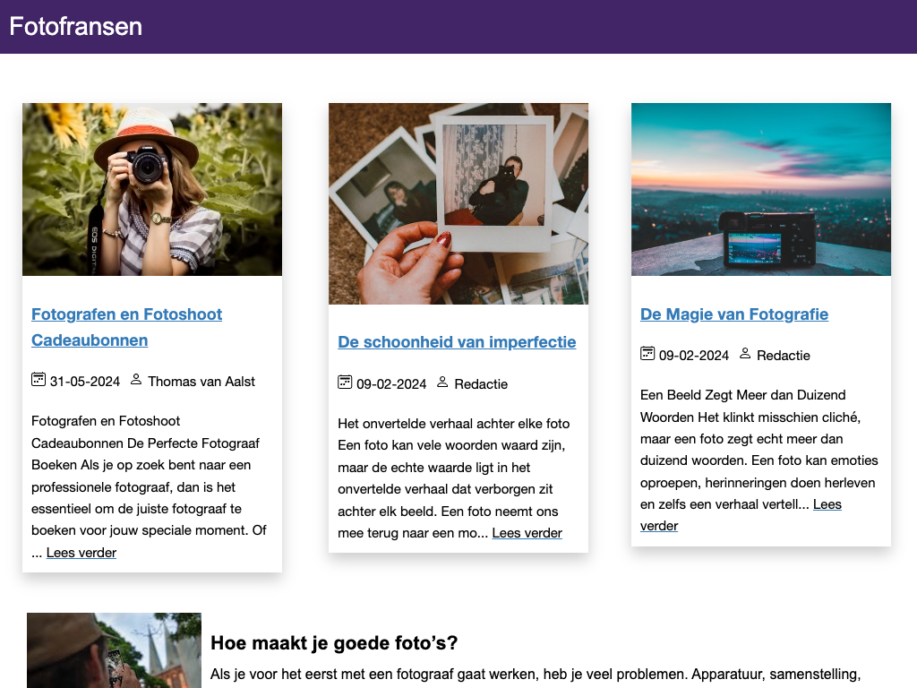 - Verstandig is om sowieso als fotowinkel ook een website erbij te hebben (en een webshop).