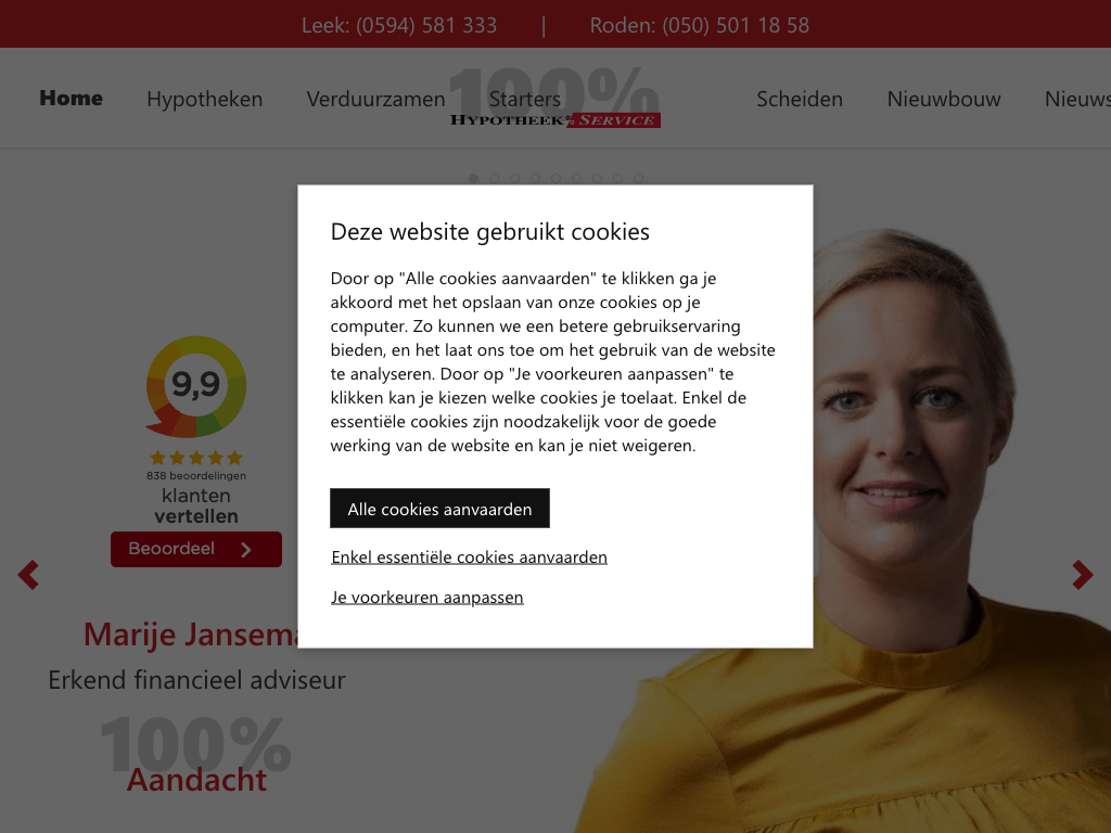 Een hypotheek is een lening waarmee je een eigen huis kunt financieren. Gedurende de looptijd van de hypotheek dient maandelijks een bedrag aan hypotheekrente, een bedrag voor de aflossing en eventueel premie voor de verzekeringen betaald te worden aan de hypotheekverstrekker. Als je een eigen woning wilt financieren dan zul je eerst moeten nagaan wat je maximaal kunt lenen. Dit hangt voor een belangrijk deel af van de huidige inkomsten en de inkomsten in de toekomst. Naast het inkomen spelen financiële verplichtingen (bestaande leningen, studieschuld, alimentatie etc.) een rol bij wat je maximaal kunt lenen. Een hypotheek afsluiten is een hele belangrijke (financiële) beslissing. Het verdient dus zorgvuldigheid en hulp van een goede adviseur daarbij is zeker aan te raden. Er zijn twee soorten adviseurs: