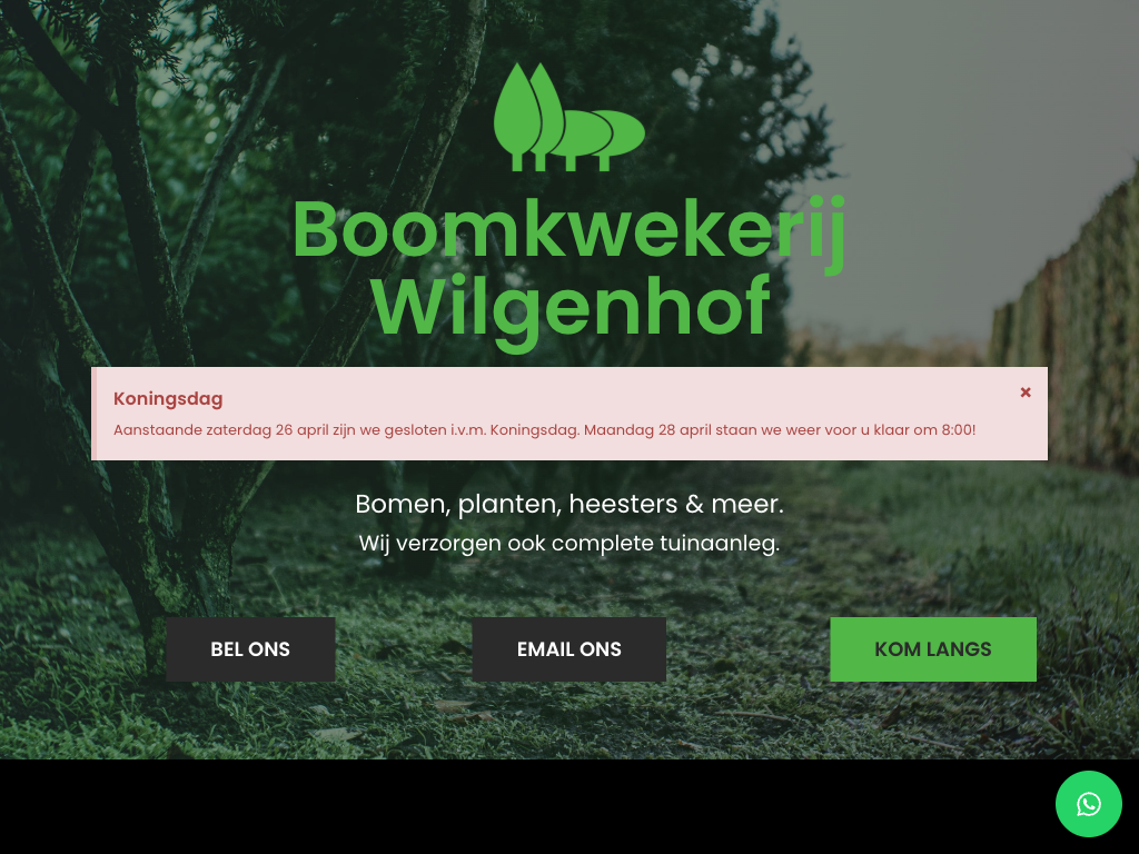 - Boomkwekerij (het kweken van bomen, struiken of heesters en vaste planten in volle grond of in pot.